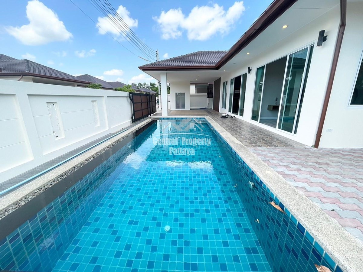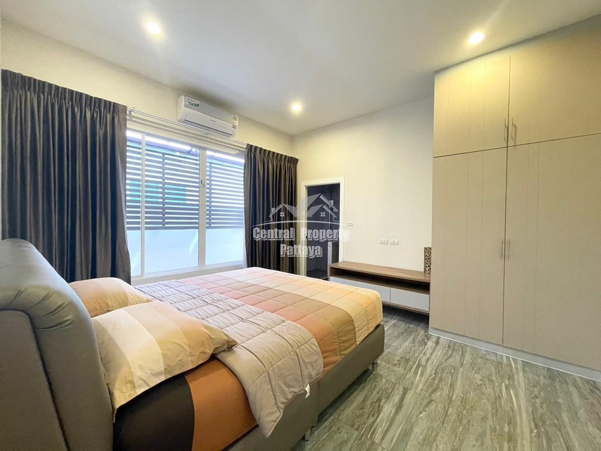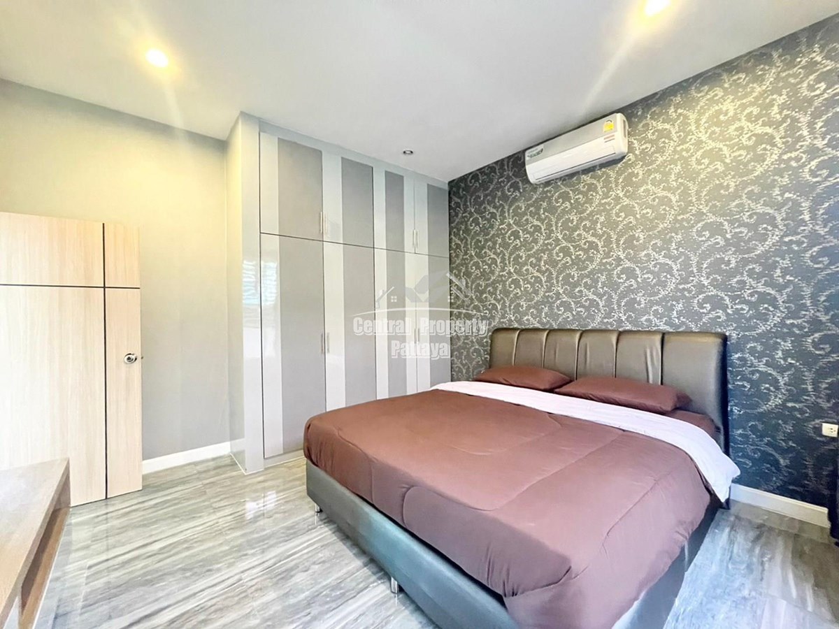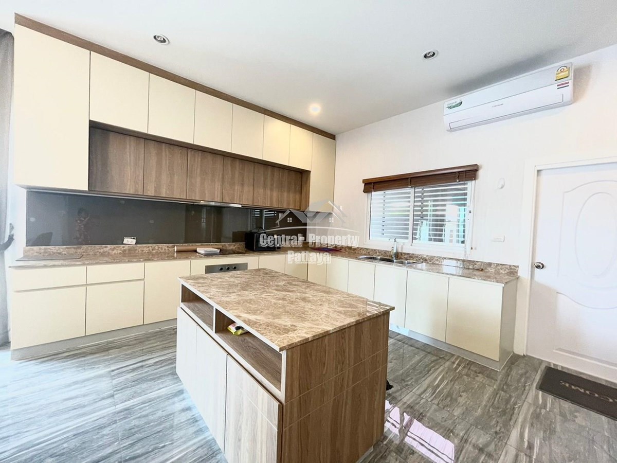 A stunning 3 bedroom, 3 bathroom house with private pool for rent in Huay Yai, East Pattaya. This home has been recently constructed to a very high standard and is fully furnished, including fitted wardrobes and a professional grade European family kitchen. The bathrooms are modern and spacious and the living space is beautifully designed with ample room for entertaining or just relaxing. As well as the large private pool, this house also has an al-fresco living area which is perfect for entertaining, as well as private parking and a maintenance-free garden.