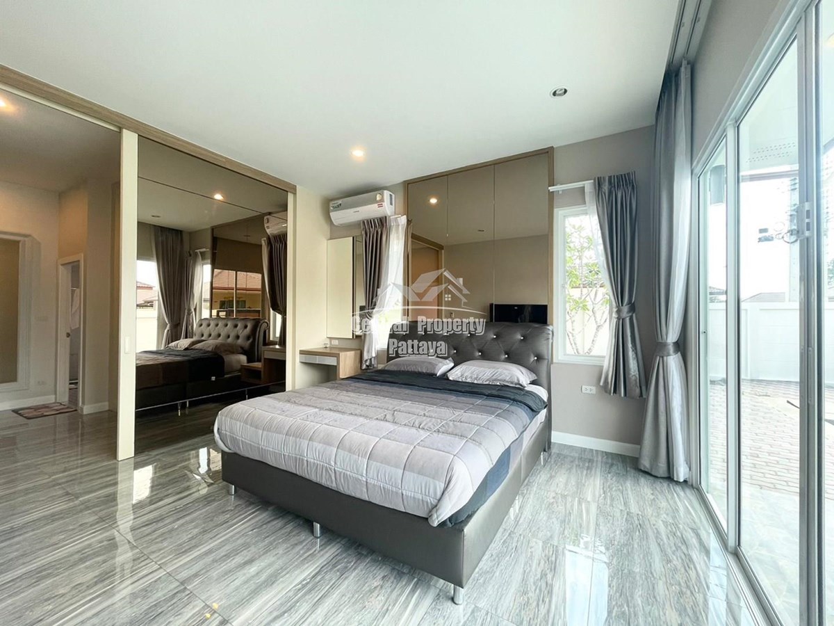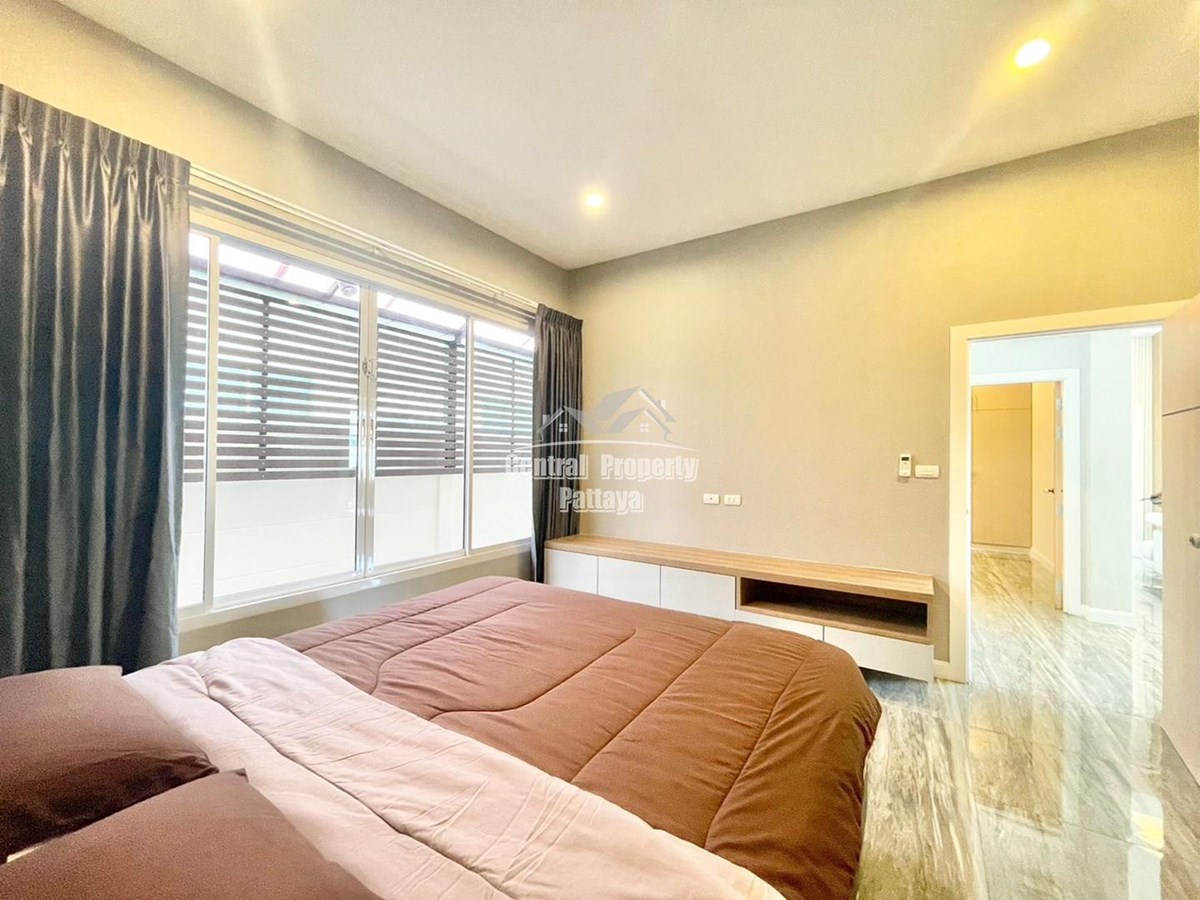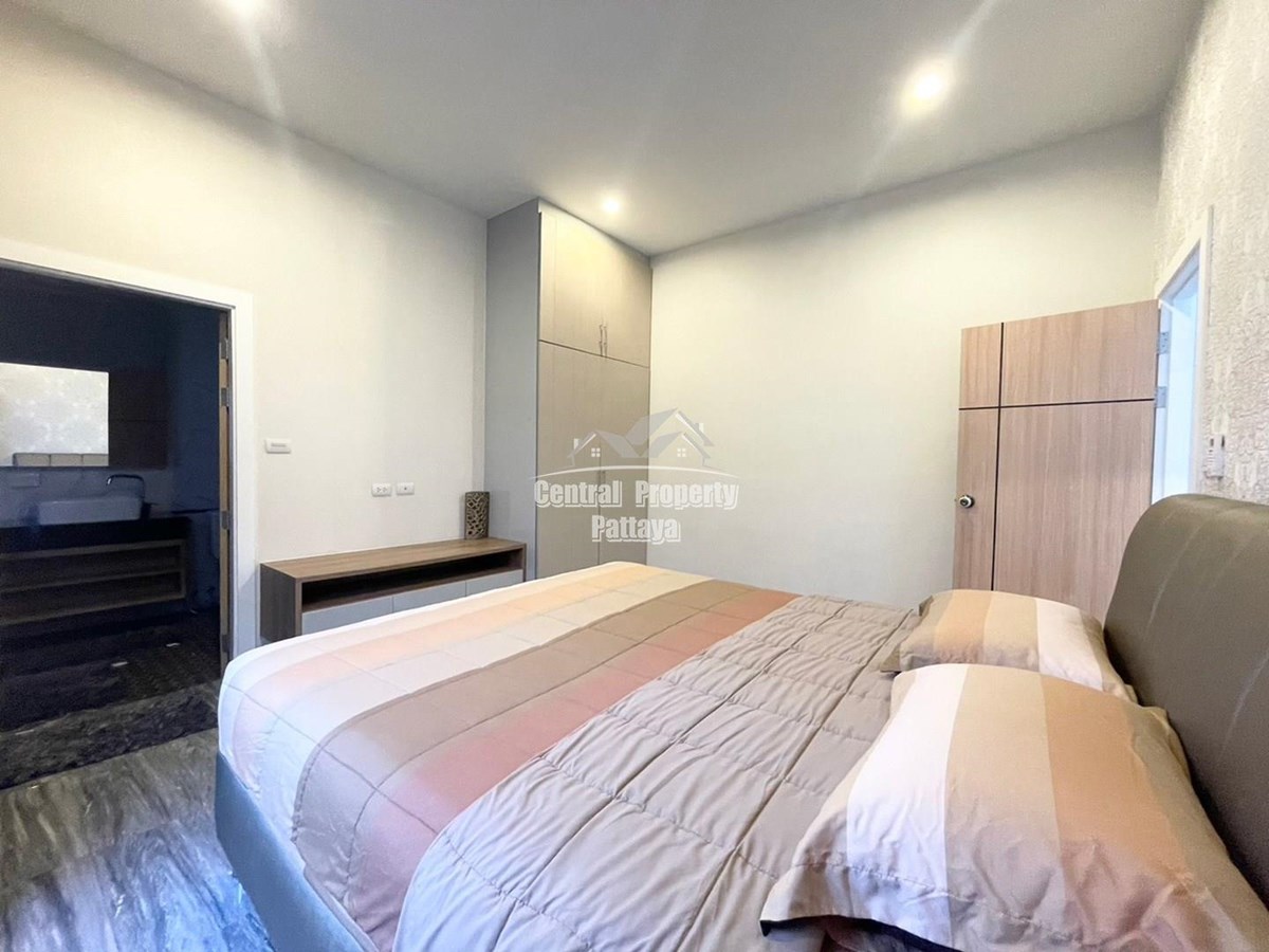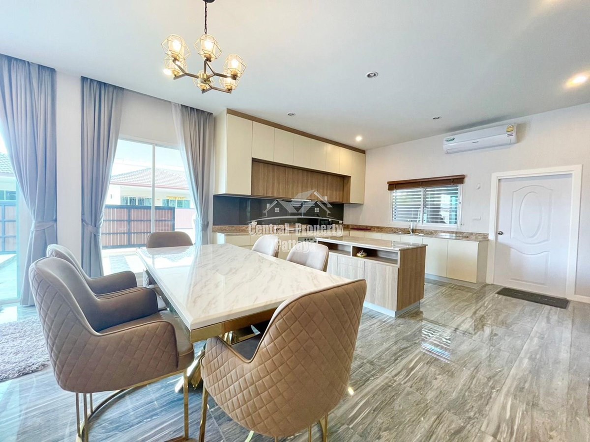 A stunning 3 bedroom, 3 bathroom house with private pool for rent in Huay Yai, East Pattaya. This home has been recently constructed to a very high standard and is fully furnished, including fitted wardrobes and a professional grade European family kitchen. The bathrooms are modern and spacious and the living space is beautifully designed with ample room for entertaining or just relaxing. As well as the large private pool, this house also has an al-fresco living area which is perfect for entertaining, as well as private parking and a maintenance-free garden.