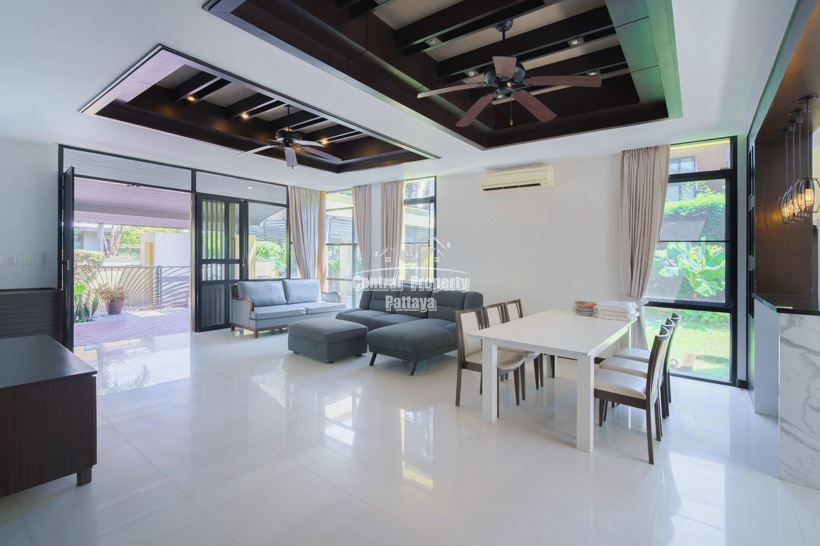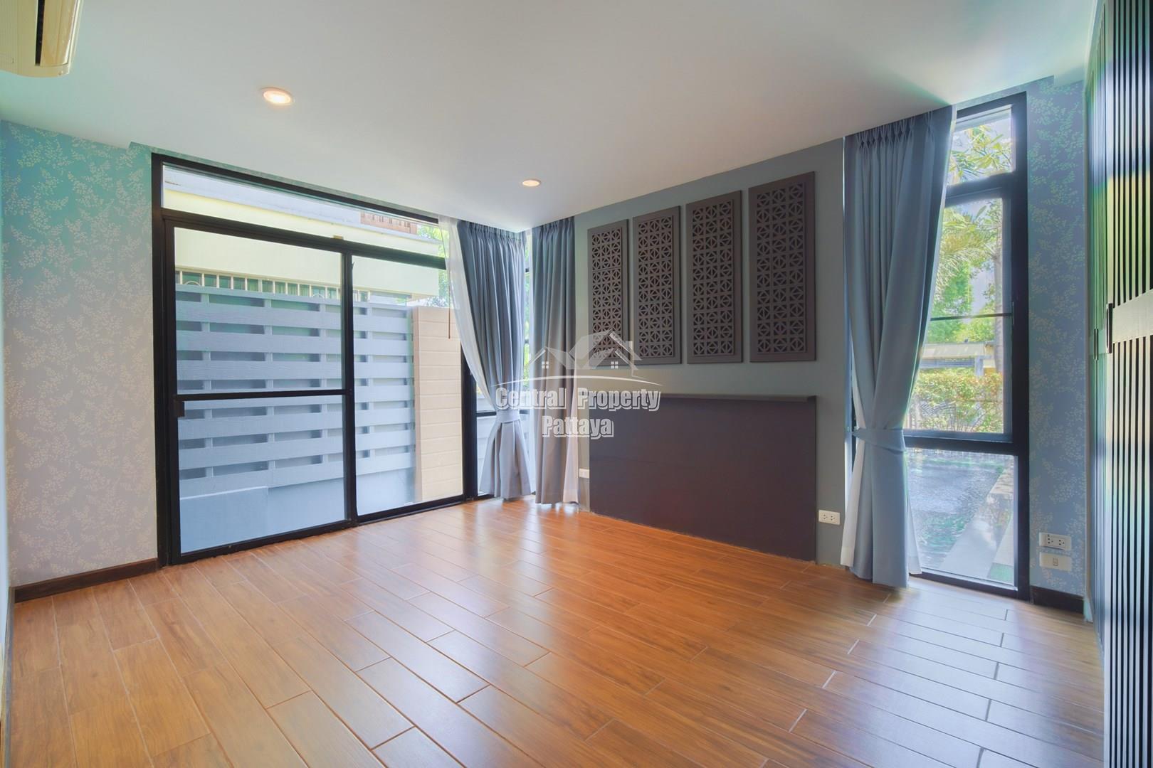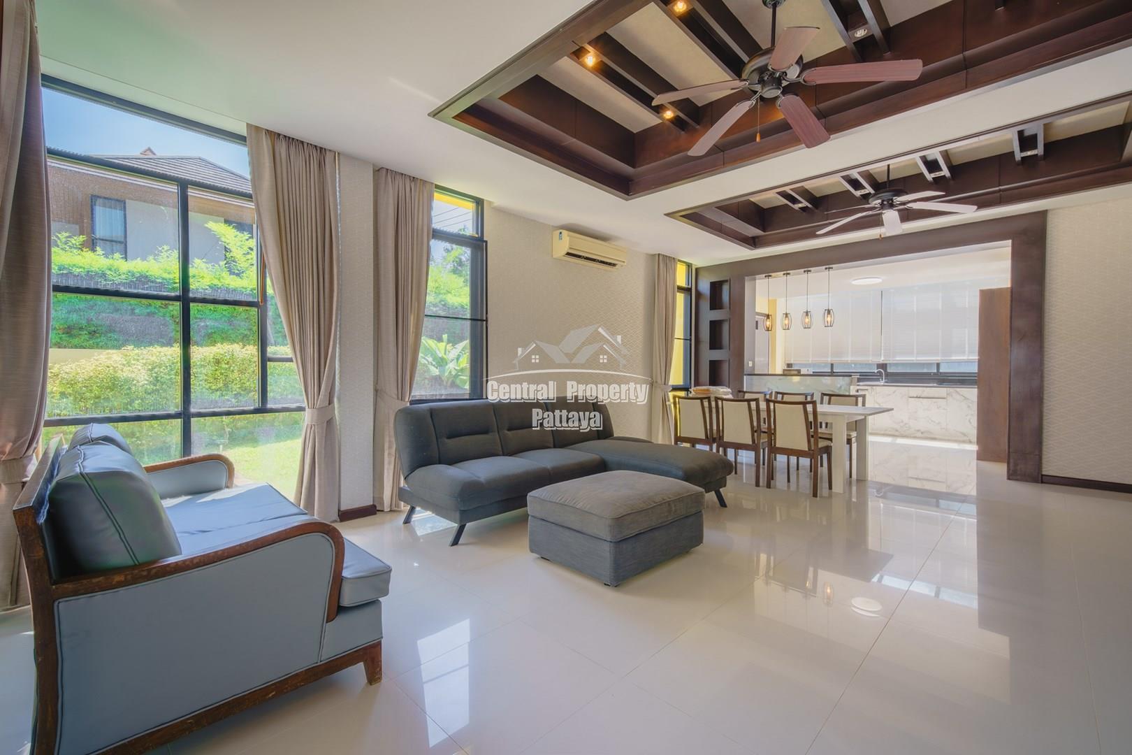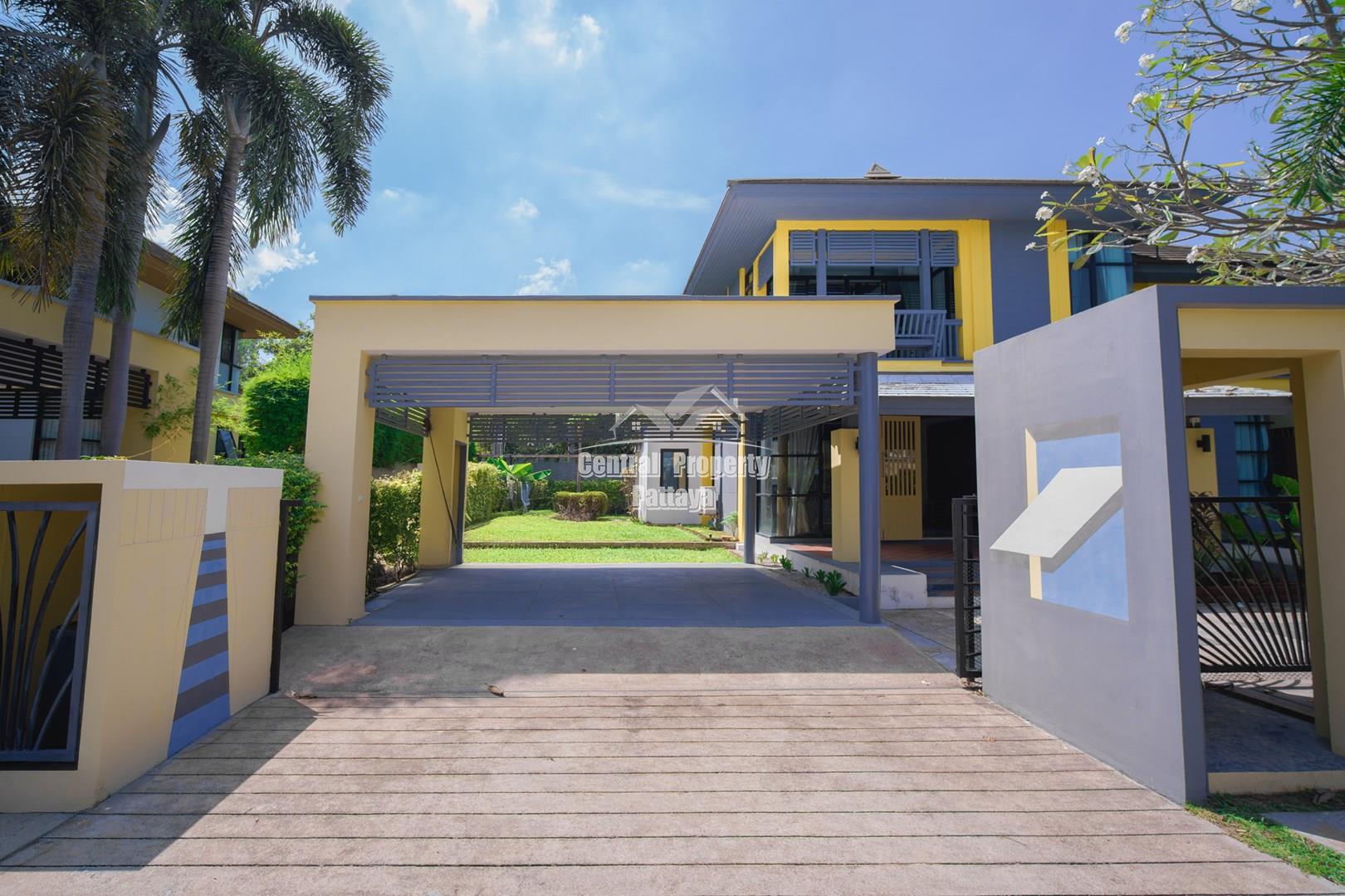 Discover elegant tropical living in this stylish 3-bedroom, 3-bathroom pool villa located in the prestigious Horseshoe Point Village, East Pattaya. Nestled in a secure and peaceful environment surrounded by nature, this home combines modern design with a touch of resort-style luxury—perfect for families or those seeking a serene lifestyle just minutes from city conveniences.