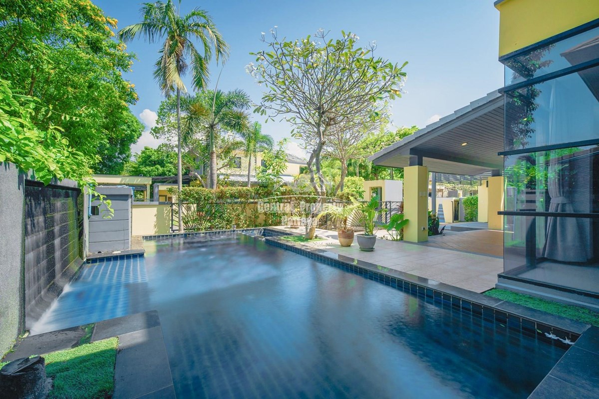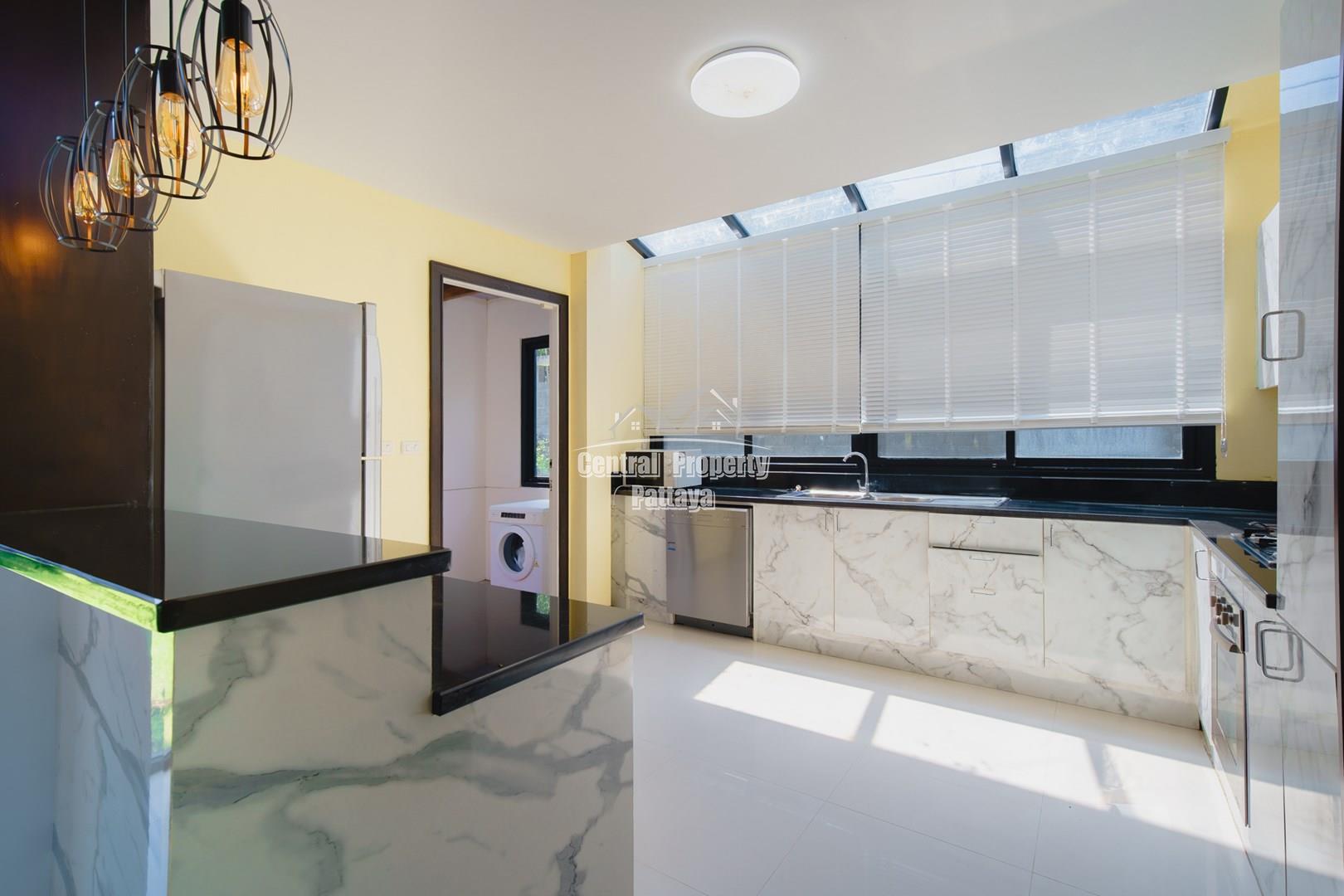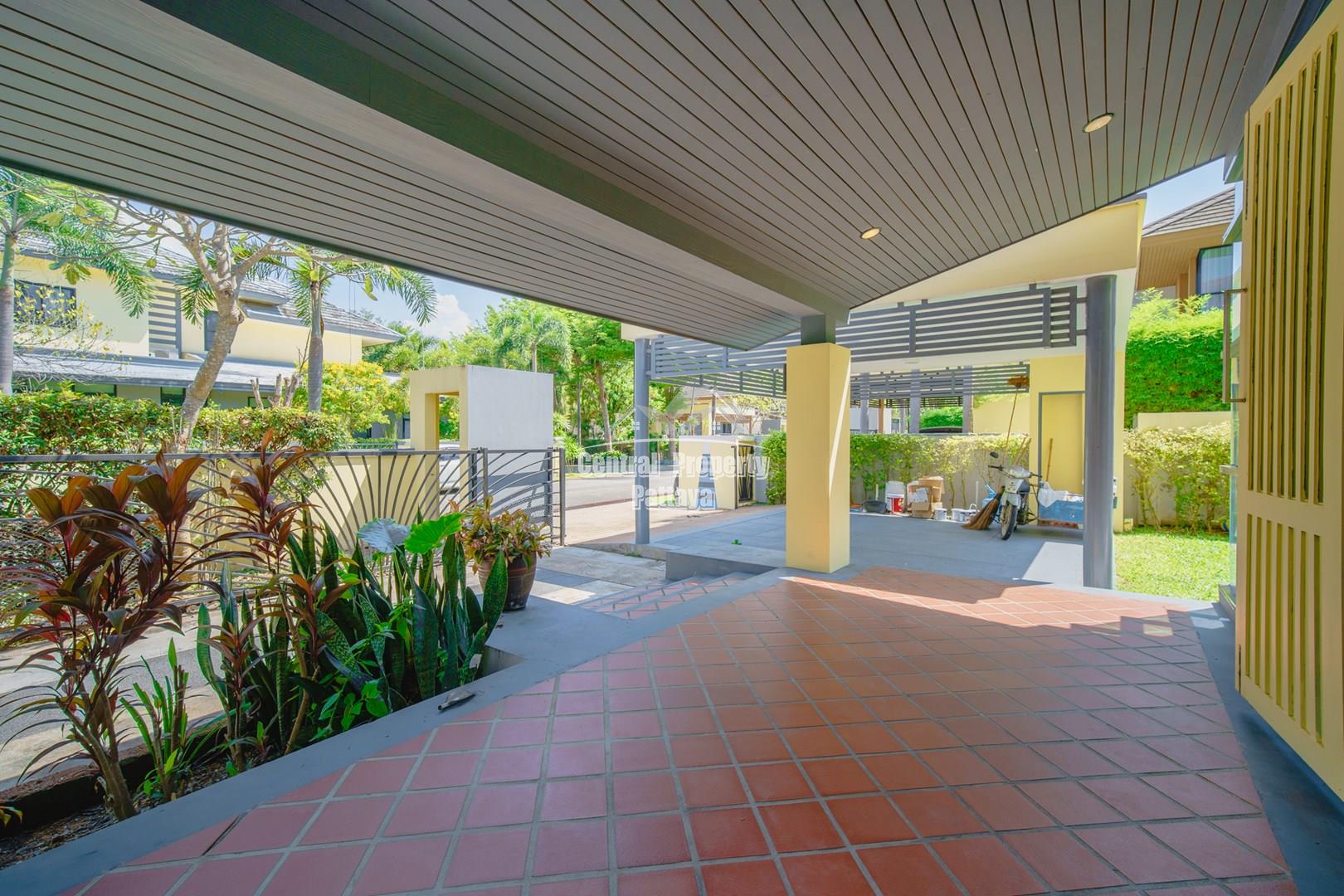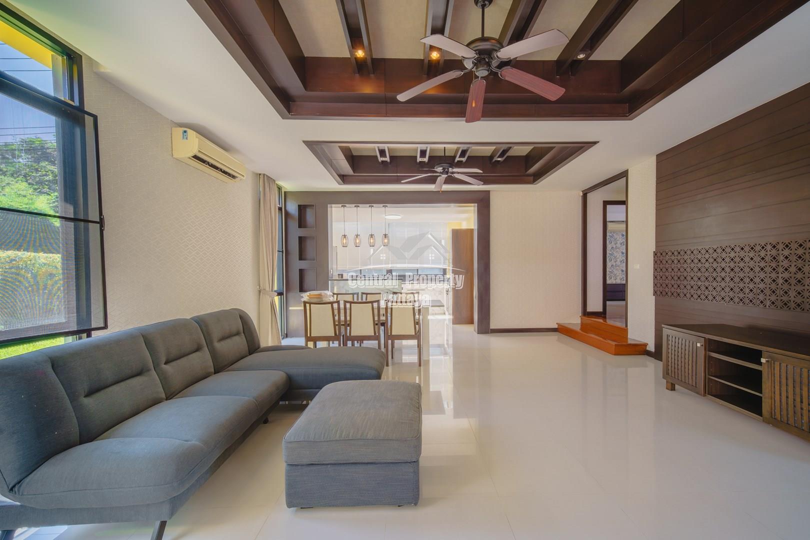 Discover elegant tropical living in this stylish 3-bedroom, 3-bathroom pool villa located in the prestigious Horseshoe Point Village, East Pattaya. Nestled in a secure and peaceful environment surrounded by nature, this home combines modern design with a touch of resort-style luxury—perfect for families or those seeking a serene lifestyle just minutes from city conveniences.