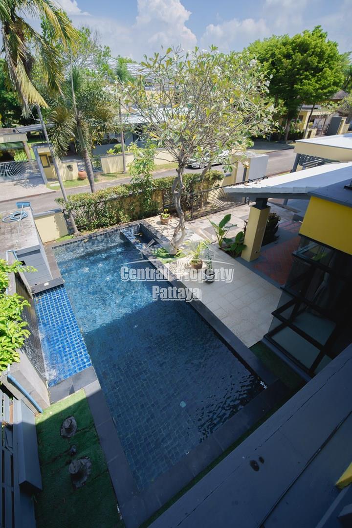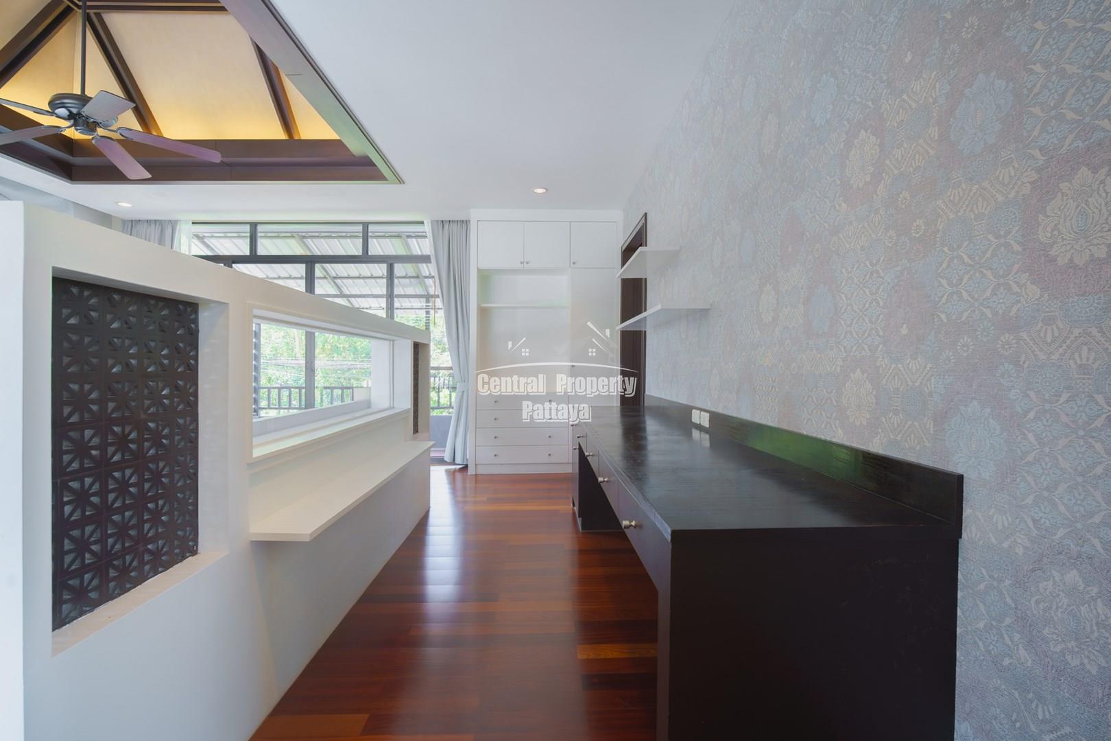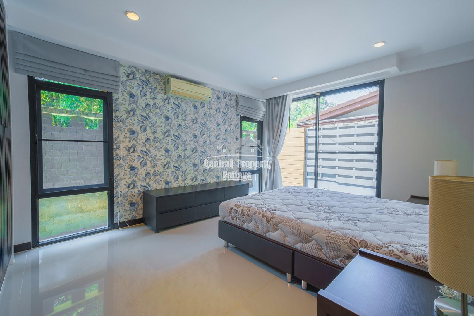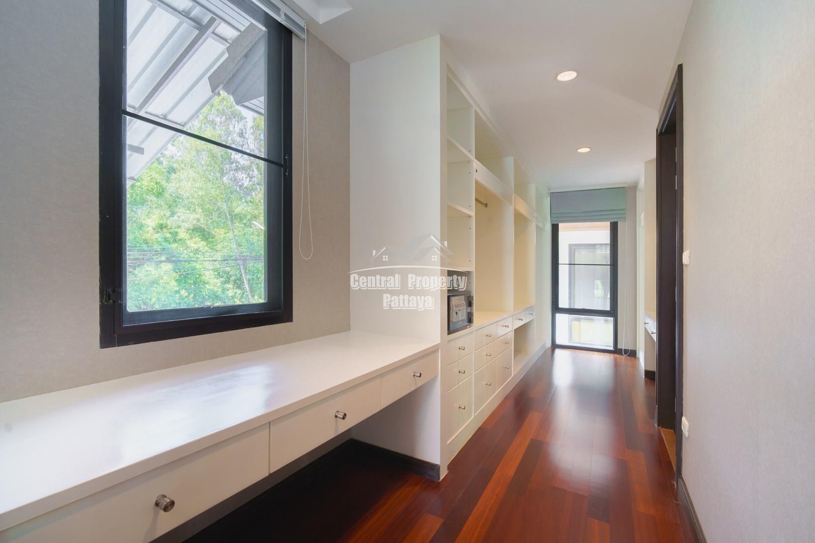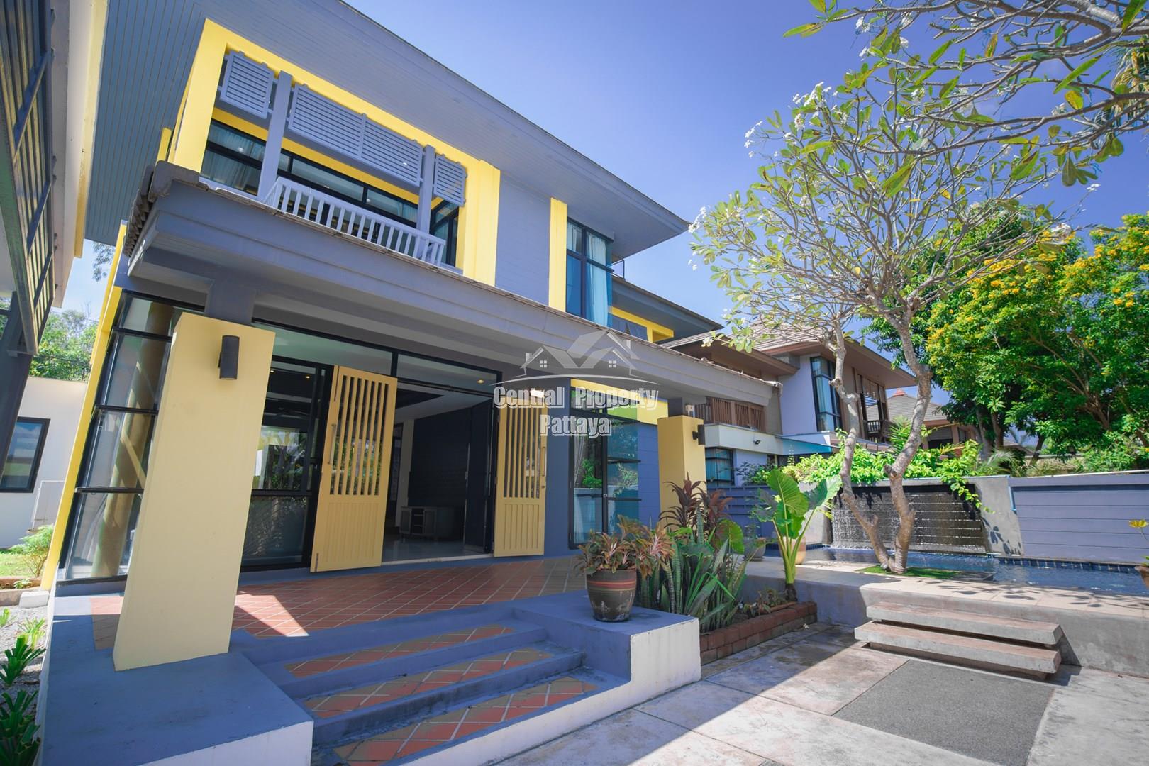 Discover elegant tropical living in this stylish 3-bedroom, 3-bathroom pool villa located in the prestigious Horseshoe Point Village, East Pattaya. Nestled in a secure and peaceful environment surrounded by nature, this home combines modern design with a touch of resort-style luxury—perfect for families or those seeking a serene lifestyle just minutes from city conveniences.